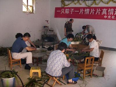 ??????? 近幾年,端午前,利達(dá)公司都會(huì)想到那些遠(yuǎn)離家鄉(xiāng)的單身大學(xué)生員工,并提前為他們準(zhǔn)備一份端午節(jié)慰問品。這份慰問品主要是粽子還有咸鴨蛋、雞蛋。粽子是哪里來的?利達(dá)公司委托中光社區(qū)居委會(huì)幫助制作的。