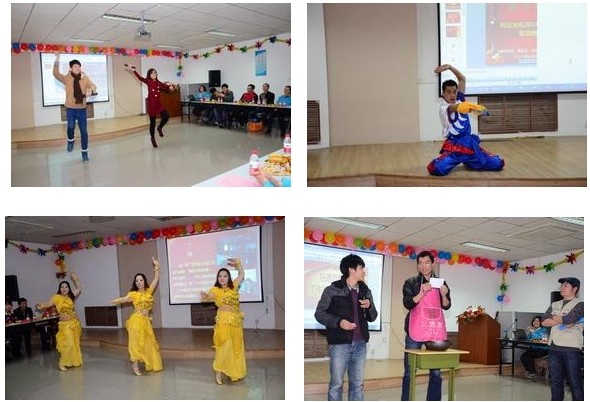 ????? 晚會(huì)現(xiàn)場雖然比較節(jié)儉,卻處處洋溢著喜氣洋洋的和諧氛圍。晚會(huì)內(nèi)容豐富多彩,包括歌曲、戲曲、舞蹈、小品、魔術(shù)、男女對唱、武術(shù)等十五個(gè)節(jié)目,給全體觀眾們帶來了一場美妙的視聽盛宴。一首合唱歌曲《猜》拉開本次晚會(huì)的帷幕;熱辣,奔放的西班牙之夜、印巴熱舞給大家?guī)У搅水悋橛颍桓鶕?jù)公司文化改編的小品《找工作》妙趣橫生,耐人尋味,迸發(fā)出積極向上的正能量;武術(shù)表演懸念頓生,豪氣沖天;歌曲《暗香》、《猜》演繹了情深意長、溫馨浪漫的真摯情感;詩朗誦《咱們工人有力量》,節(jié)目巧妙運(yùn)用詩朗誦獨(dú)特的語言藝術(shù),謳歌公司發(fā)生的變化和取得的輝煌成就,歌頌了利達(dá)人的敬業(yè)精神、團(tuán)隊(duì)合作精神,真情流露,感人肺腑,讓在座的觀眾贊嘆;小品《胡導(dǎo)》以其詼諧幽默的語言、滑稽搞笑的到位表演的藝術(shù)表現(xiàn)形式更是笑爆全場;更有郭富強(qiáng)表演的魔術(shù)和蔣麗的戲曲表演,讓我們領(lǐng)略了利達(dá)人別樣的激情與風(fēng)采。抽獎(jiǎng)活動(dòng)穿插期間,將聯(lián)歡會(huì)氣氛一次次推向高潮。